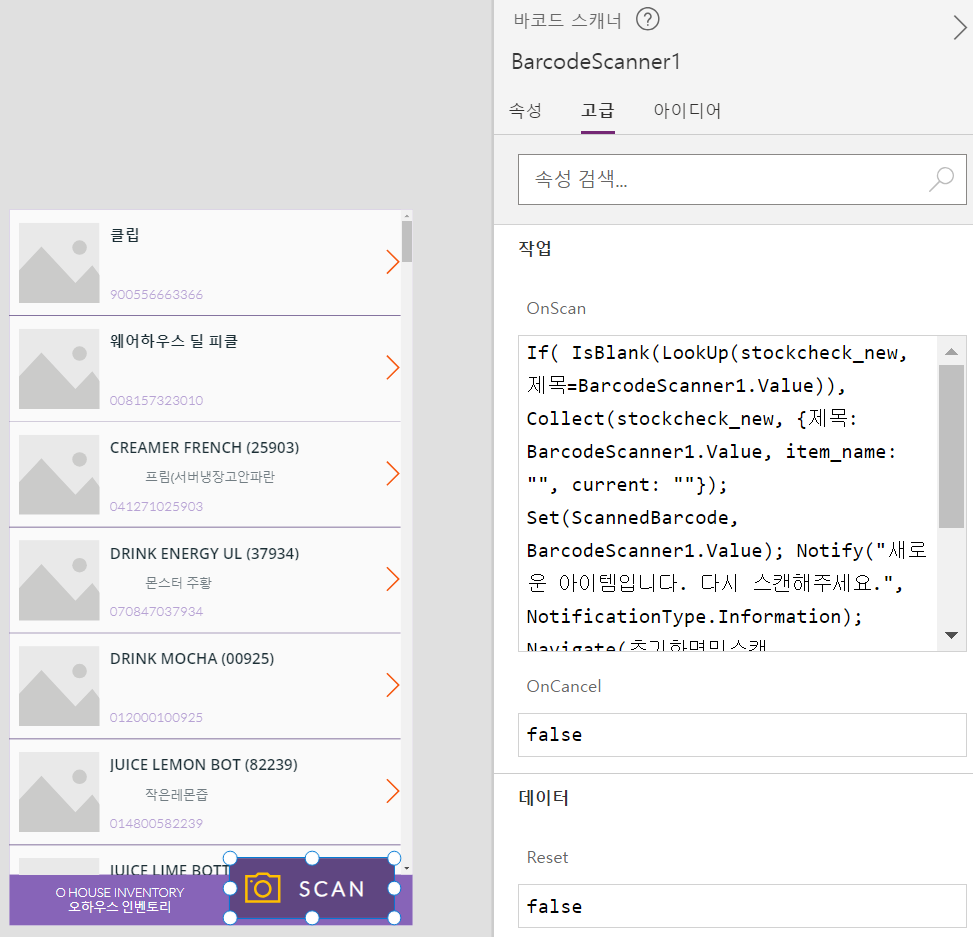 LookUp(stockcheck_new, 제목 = ScannedBarcode),